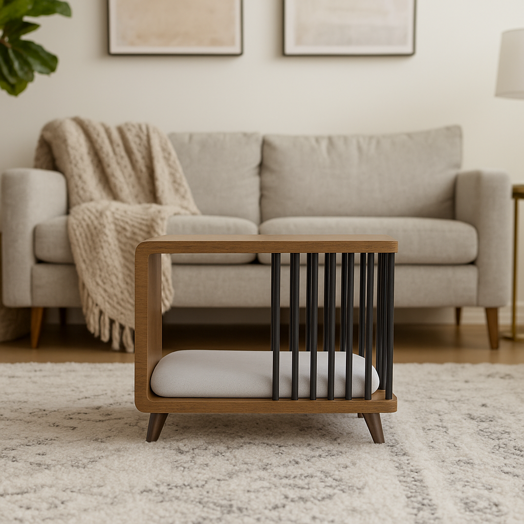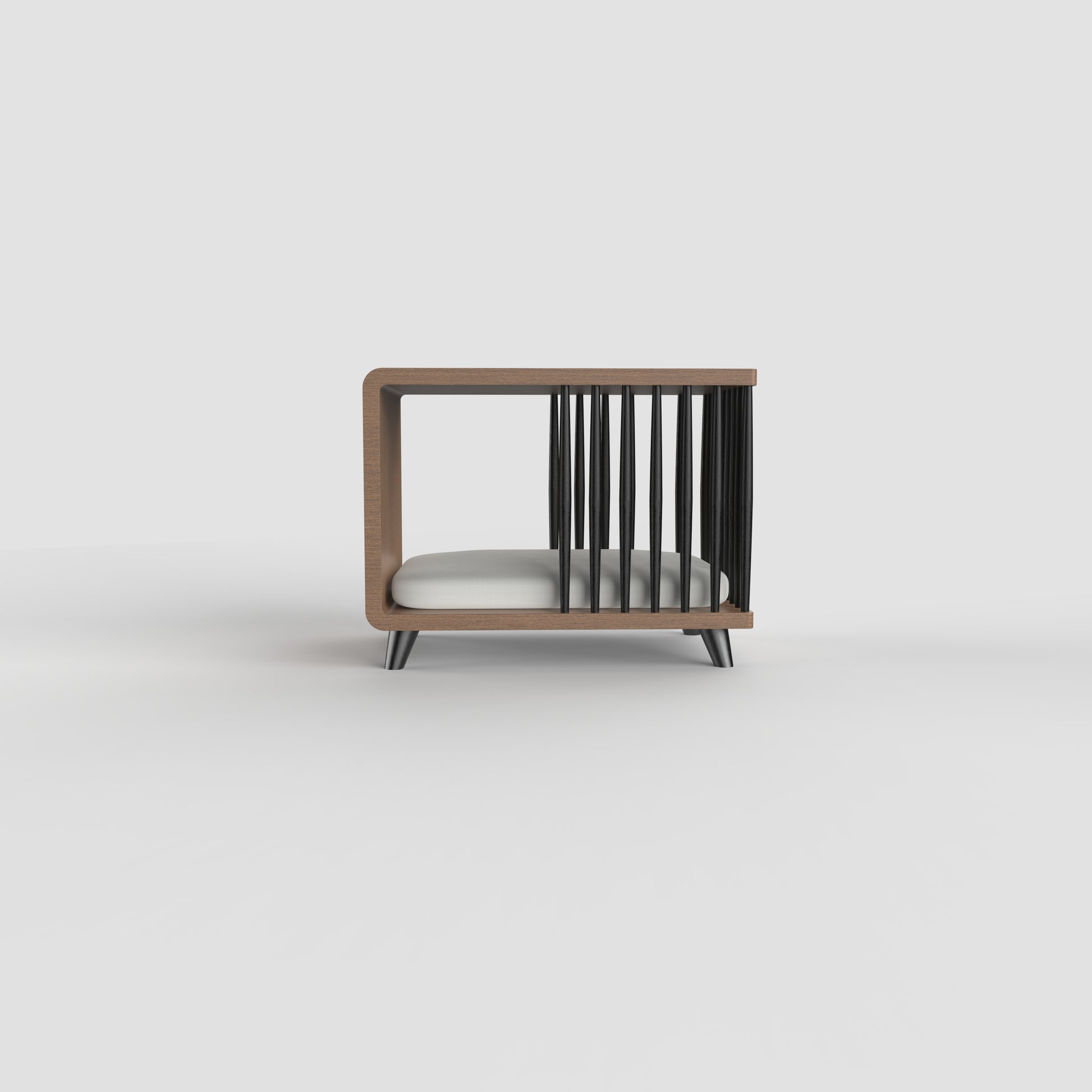 Kadle is a furniture inspired kennel for puppies, defined by its square frame and open two sided design. Its minimalist lines and balanced form create a light, airy enclosure that feels part of the home rather than separate from it. Crafted with an emphasis on simplicity and style, Kadle is both a functional space for pets and a contemporary accent for interiors